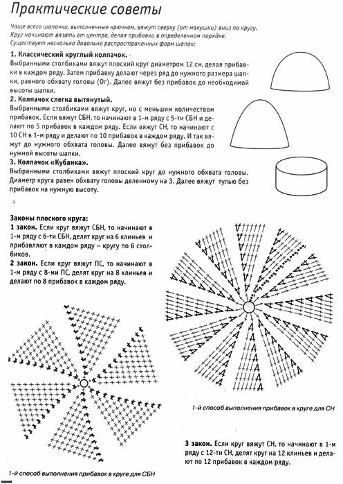 Как вязать плоский круг столбиками с накидом и столбиками без накида: