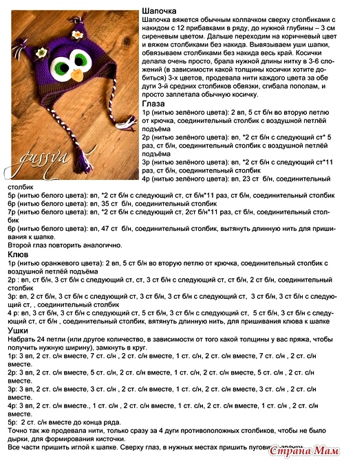 Шапка-сова крючком: